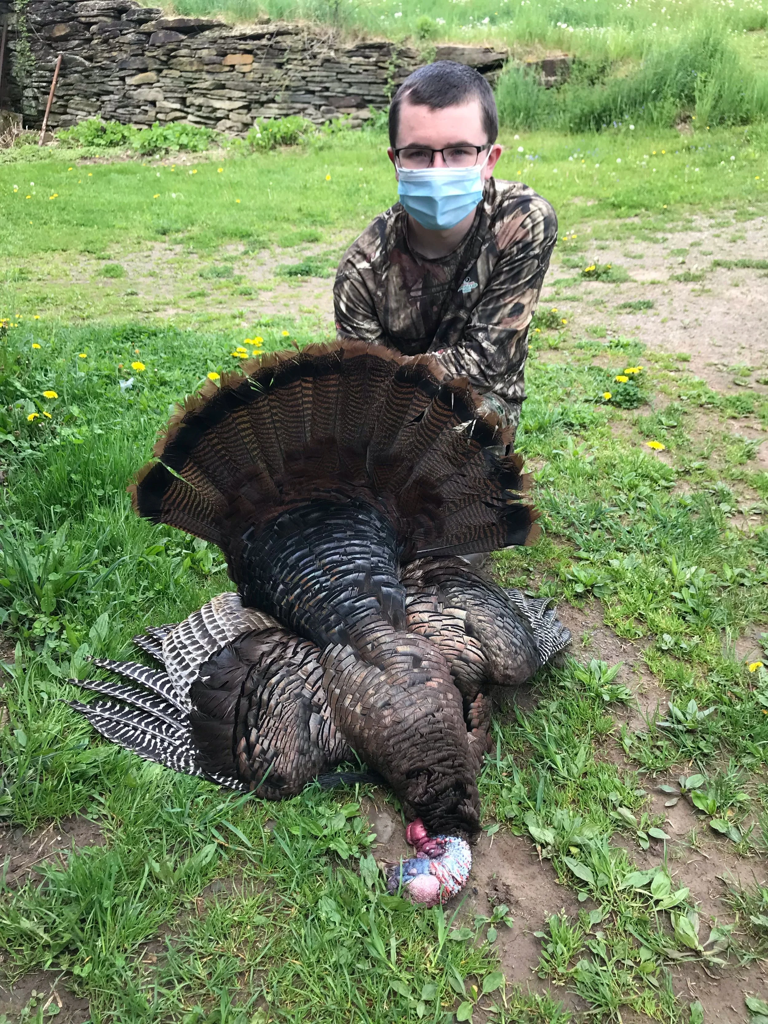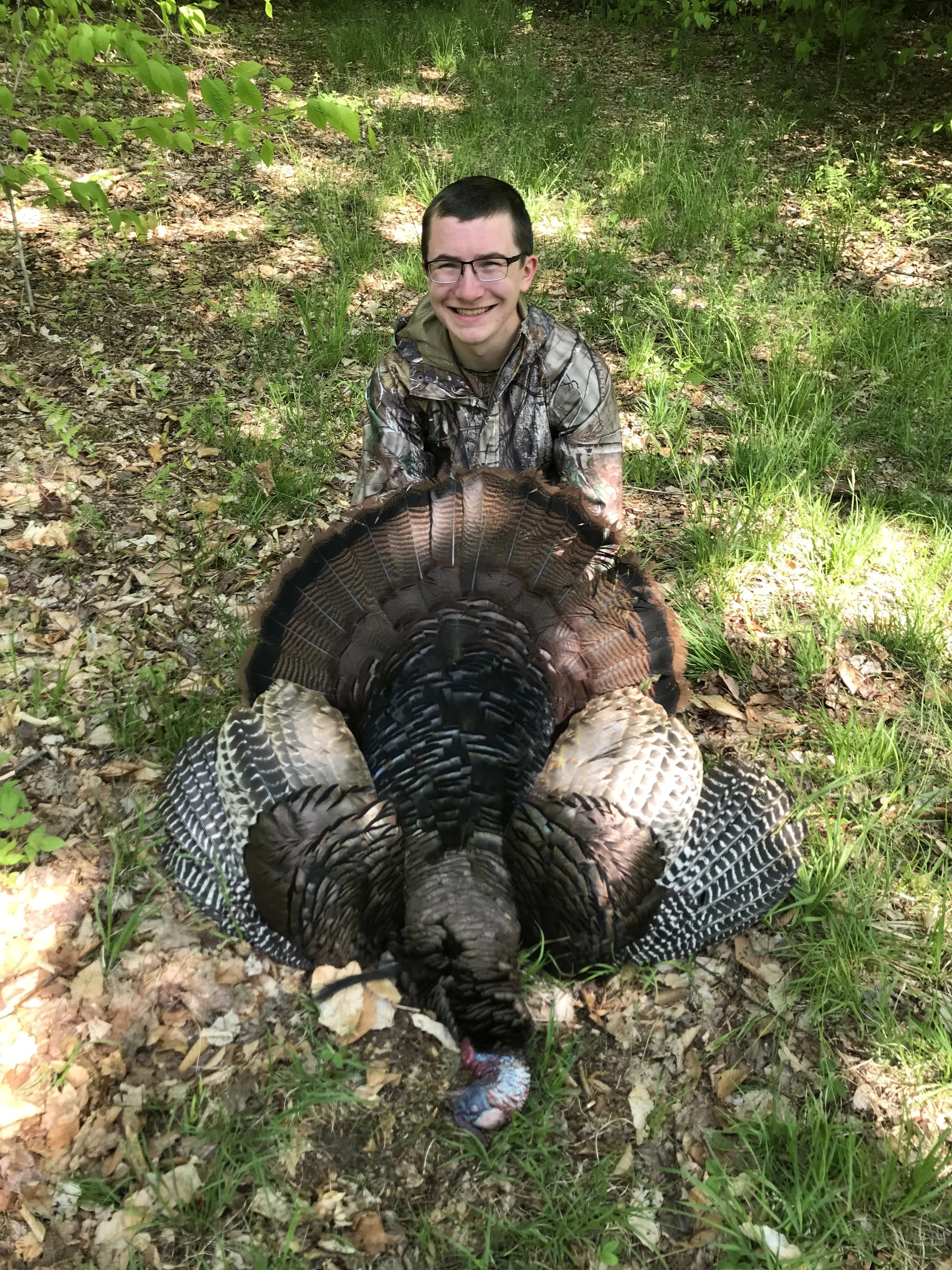 My Dad and I went up to New York last spring and we were hunting on my dad’s friend’s property. The first day we set out to hunt this one hill that we thought would have a gobbler on it but we didn’t hear one. We heard a gobbler on another ridge and we knew that we should go after him tomorrow. The next morning we got up early and headed down the road and got up on the hill on the edge of a field and it started raining. We sat there for a couple hours and didn’t hear him so we went to the camper and warmed up. We figured to give that gobbler a break for a day and try a different spot out at another farm but we didn’t have any luck there. So the following morning we got up on the hill and set up a decoy and called but still couldn’t get him to come in. He had some hens with him that took him right away from us and into a field. We made our way out to the edge of the field and we could see them out there about 50 yards away. My dad started calling and the gobbler would gobble but wouldn’t come in. One of the hens decided she would see if it was safe, so she made her way into about 20 yards and then walked back to the other hens and the gobbler, then they made there way out of the field. We decided that the next morning we would sit on the edge of the field and wait for the hens to bring the gobbler to the field, but they never showed up. Then we heard them down where we had been just a couple days ago. We hurried up and got as close as we could without spooking them. I got set up and my dad got set up 30 yards behind me, so that when he called the gobbler would be focused on his location. We heard them down the hill so my dad started calling and the gobbler started gobbling and he was getting closer. I could see two hens run past the opening in the edge of the field so I motioned to my dad that I saw two hens going to the right. They ran past us at about 30 yards but I just stayed still because I still heard the gobbler in front of me and he was still getting closer. Before I knew it his head crested the hill and I was waiting for him to get his head up a little bit more, but he had a different plan. He started putting and going down the hill to the left but then cut to the right and there was a small opening that I could get a shot through. Then I thought “This is my last chance!” I lined up the bead of my Benelli shotgun and BOOM! I saw him start flopping and my Dad said “Did you get him?” I said “Yeah he is flopping down here”. And the Rest is History!